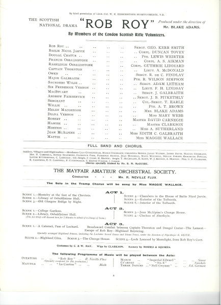 Duncan continued to act in the London Scottish, including appearing in the regimental production of ‘Rob Roy’.